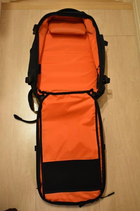 「Aer」のブランドを選んだのは、カジュアルすぎず、ビジネス過ぎずのちょうどいいデザインバッグが多いところ。「Aer Travel Pack 3 X-Pac」は、ちょっと無骨に見えるけど、バッグの内側のカラーが鮮やかすぎるオレンジ!ファスナーを開けると一気にド派手なオレンジでちょっとテンションも上がる。オレンジは「Aer Travel Pack 3」でも「X-Pac」のみのカラー。