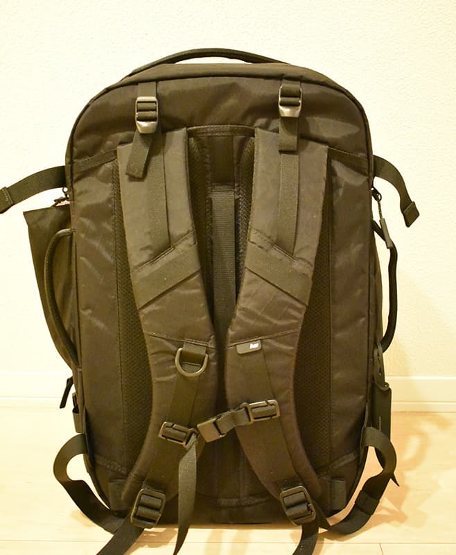あと、背負う部分にはスーツケースの取っ手にハマるようになっているのもポイント高いです。これあるとスーツケースとの組み合わせの使い勝手が全然違うう。1週間程度の旅行、出張の際のスーツケースとのコンビはもしかすると最強かも。