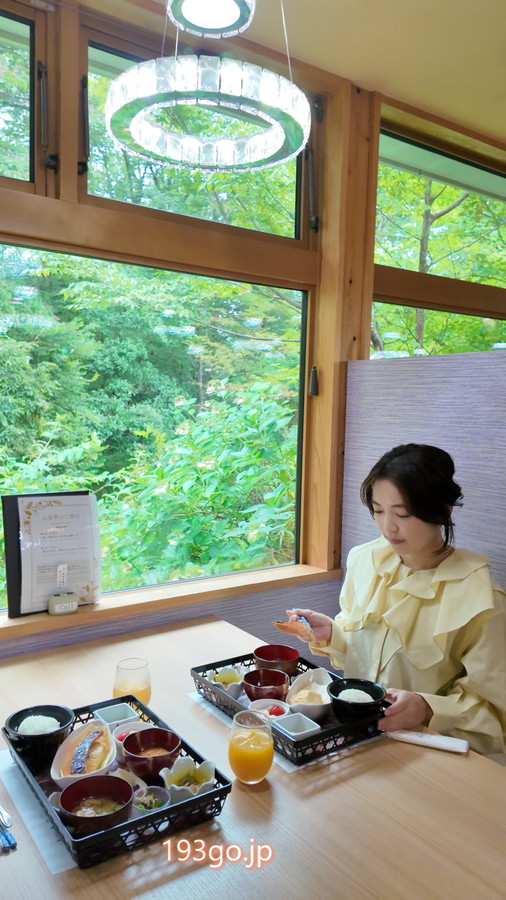 お宿では趣のある岩風呂の温泉と朝はほっこりする和食御膳を堪能。