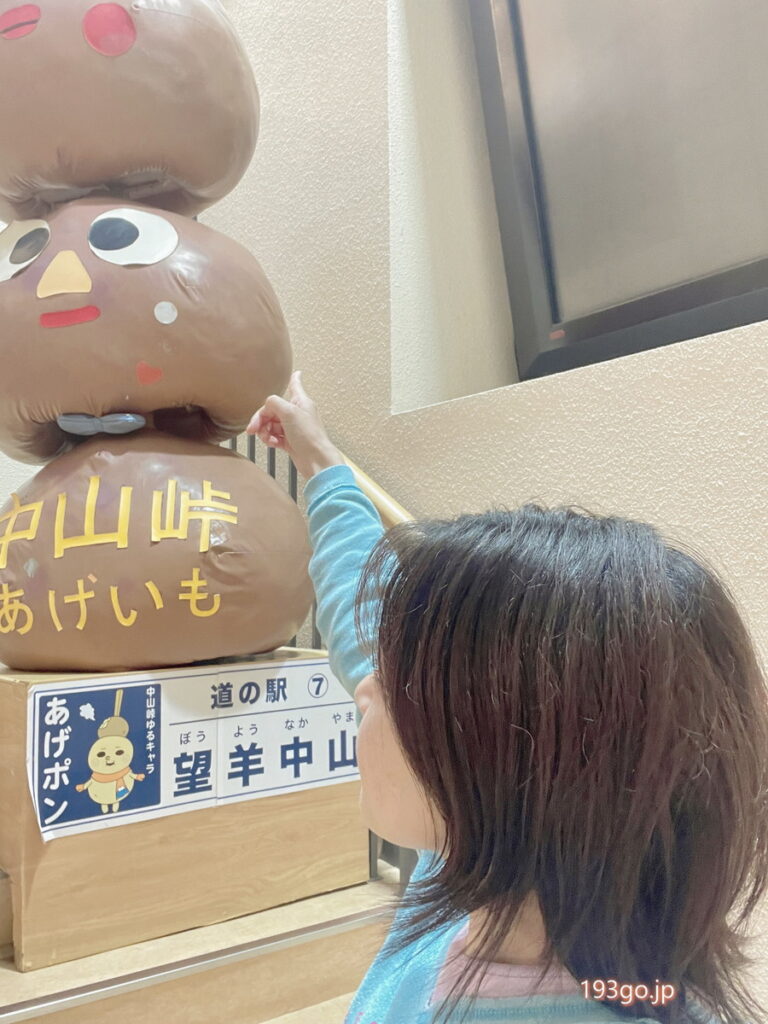お土産売り場には、公式ゆるキャラ「あげポン」グッズが並んでた。