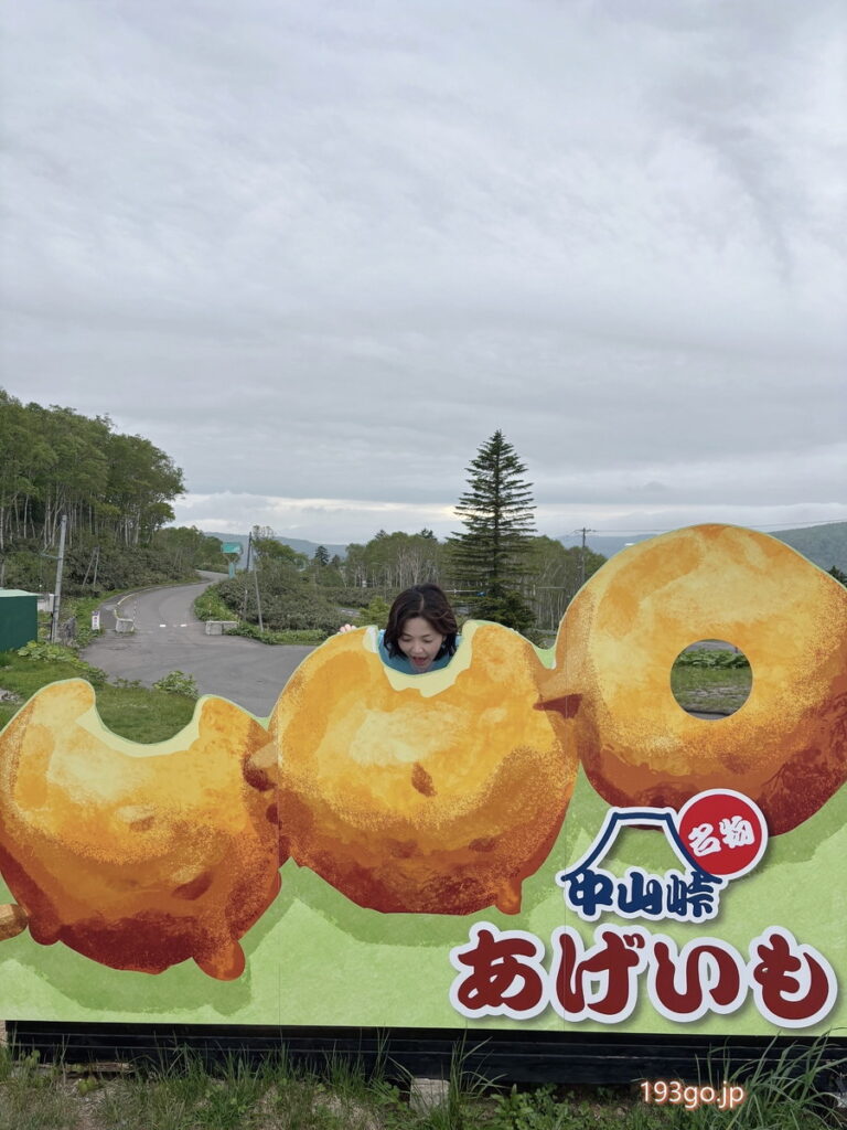 景色の良い山の上で頬張るあげいも、美味しかった。