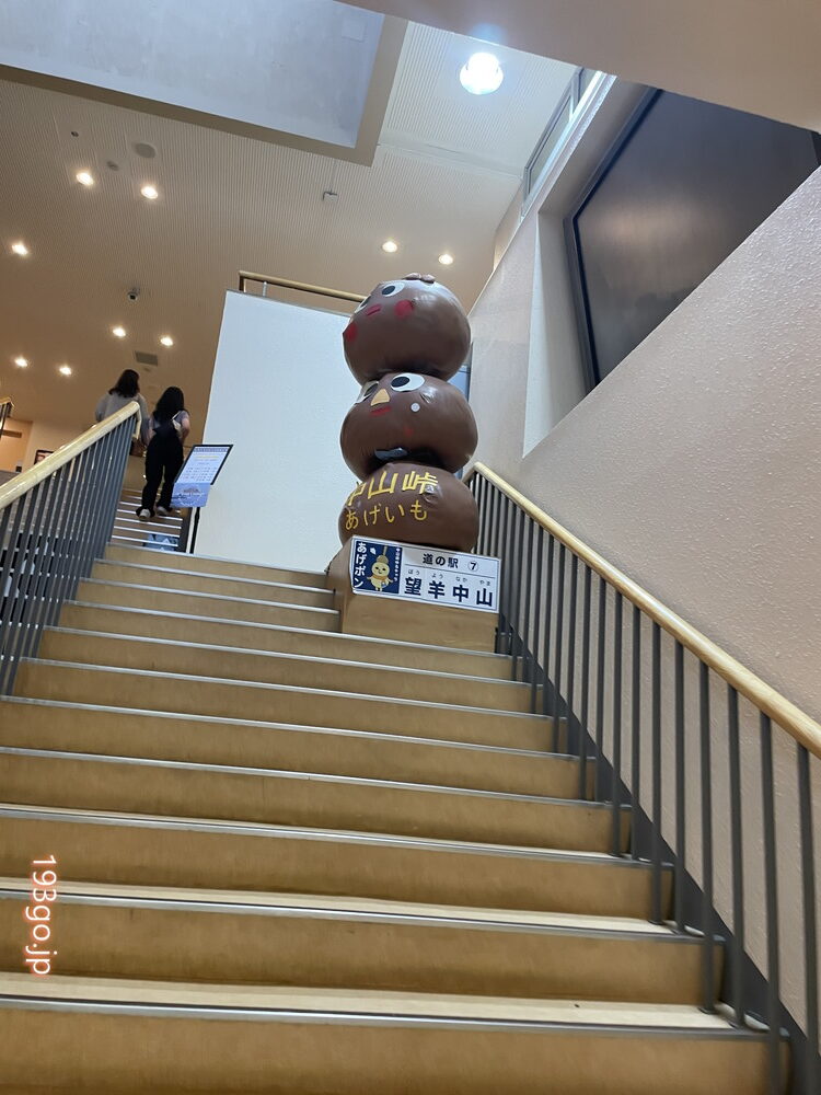 階段に大きなあげいもオブジェ、外にも顔出しフォトスポットが。