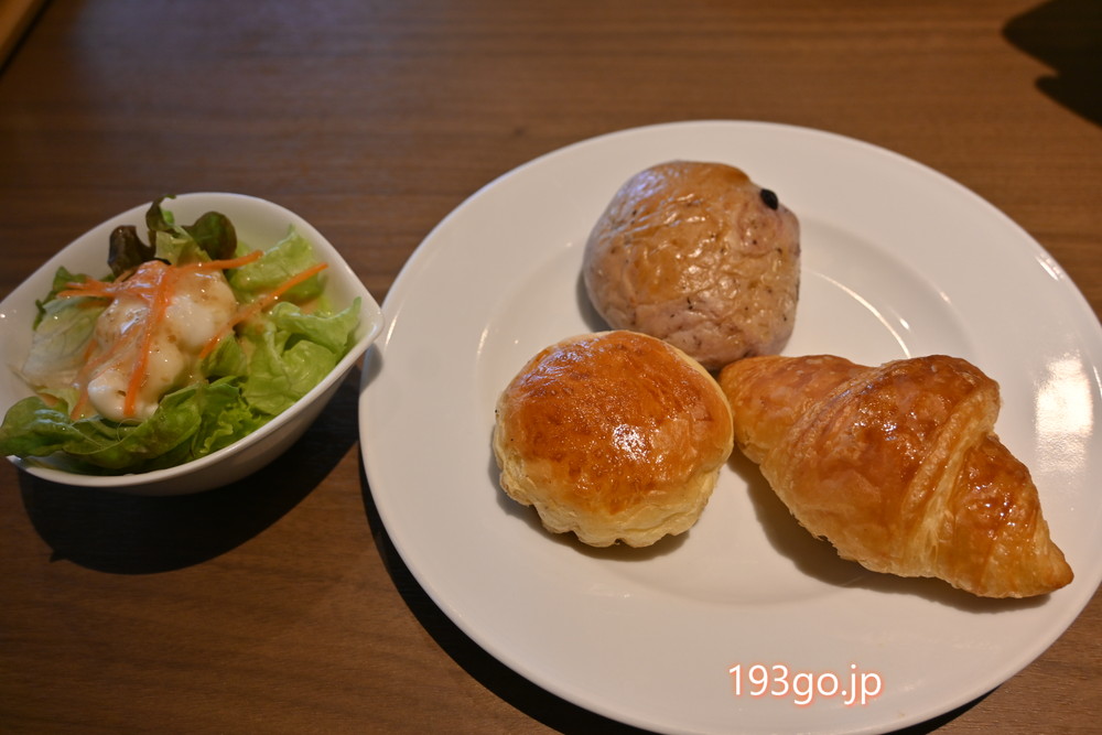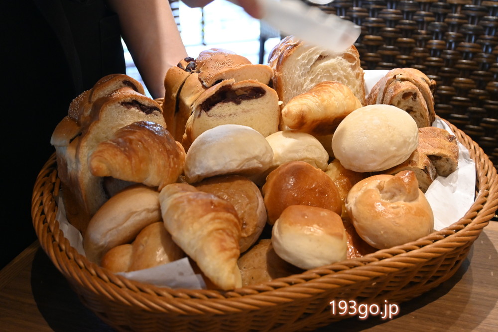モーニングセット ドリンクにパン3種とサラダ付き!山盛りパンからチョイス