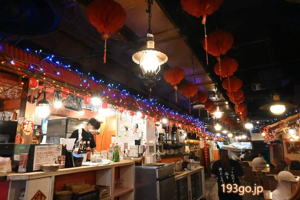 店内天井にも提灯が並び、中華の屋台雰囲気。席数は200席と広い。