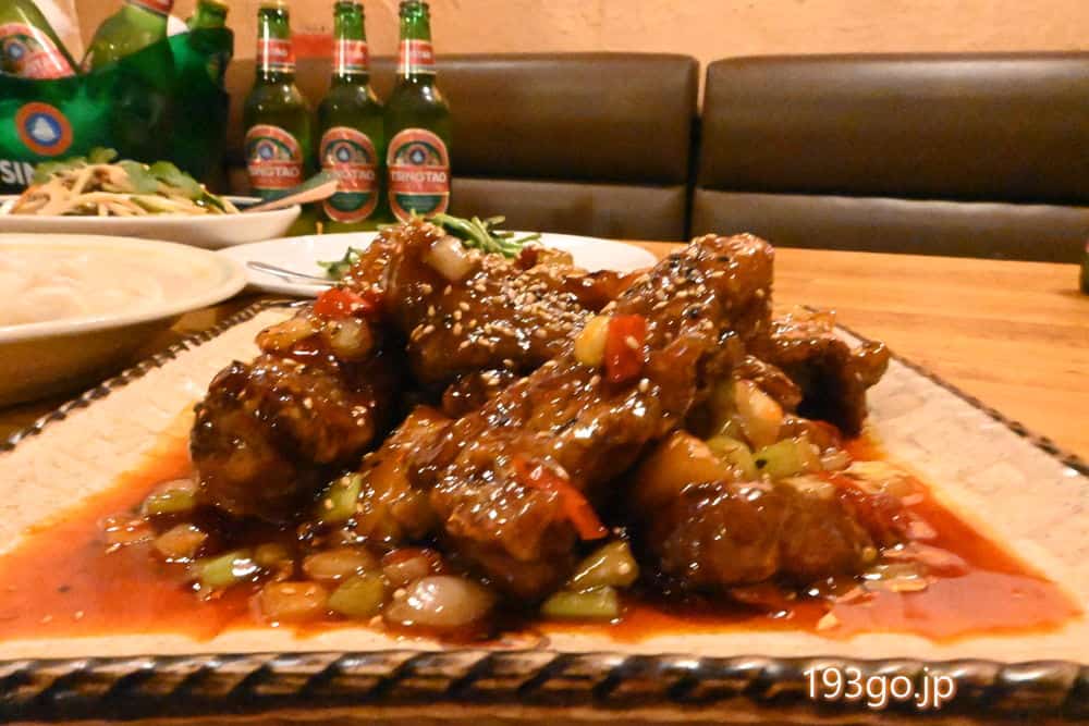甘じょっぱい味付けのスペアリブは丸かじり!骨の周りは肉厚ジューシー。