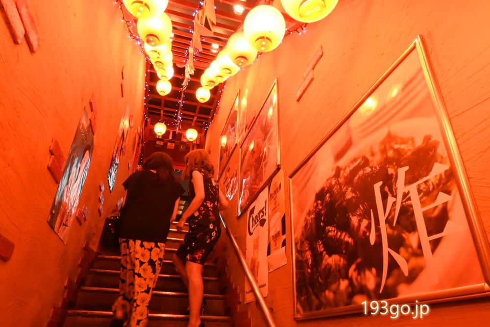 提灯が灯された赤く薄暗い怪し気な階段を下り中へ。