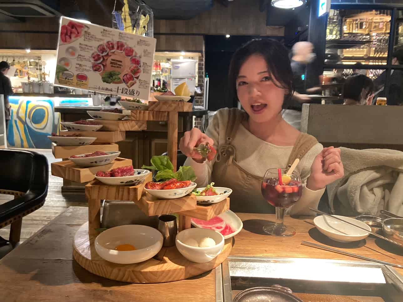 そして一番下に黒毛和牛すき焼きサーロインと卵、最初に選んだ花咲牛タンが。