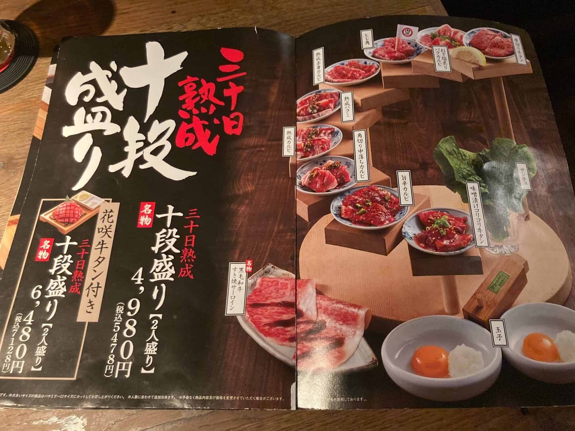 三十日熟成 十段盛りと飲み放題付きのコースは6,556円 (税込)