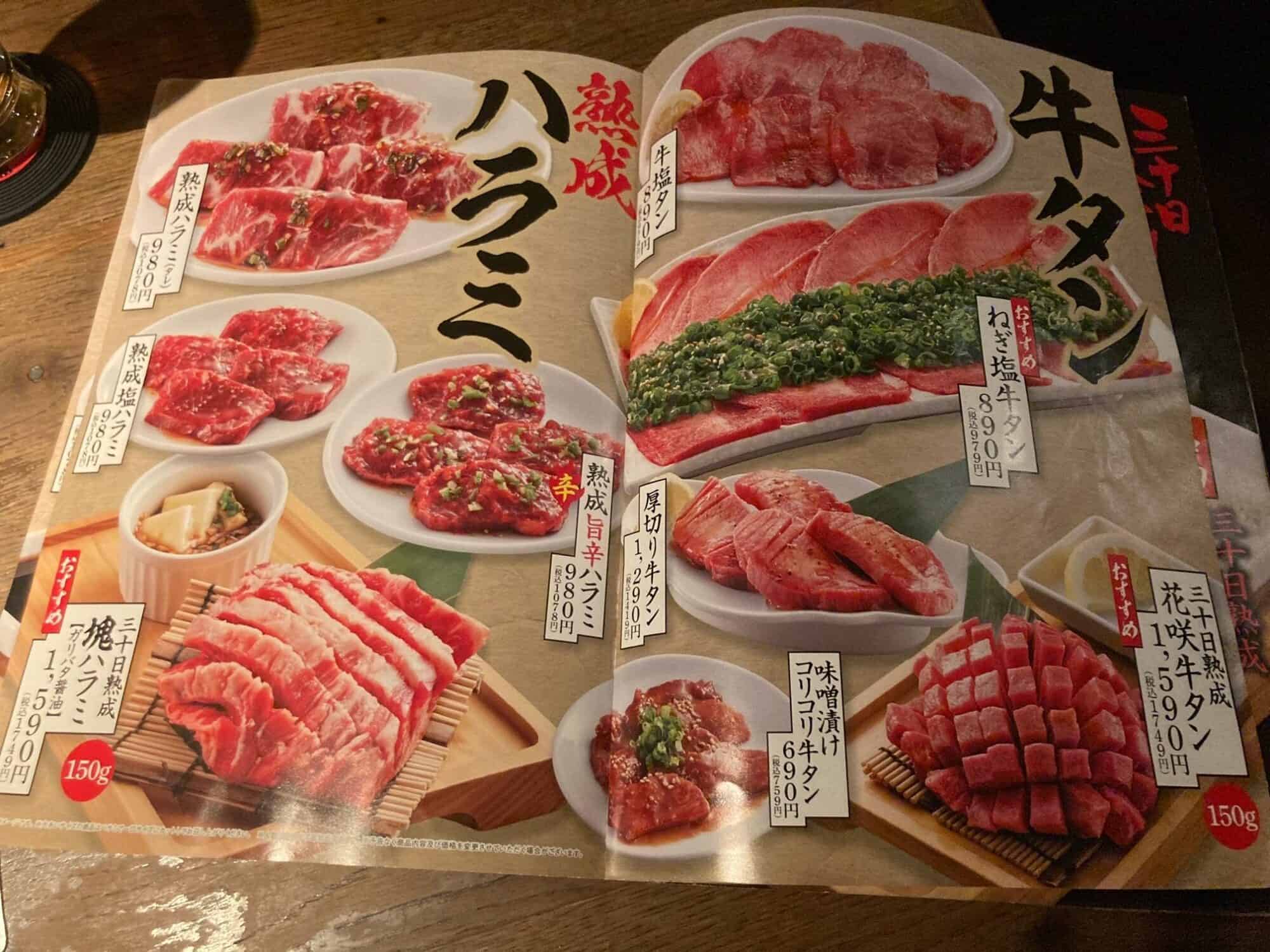 メニューを広げると、赤く鮮やかな肉の写真が美味しそう。
