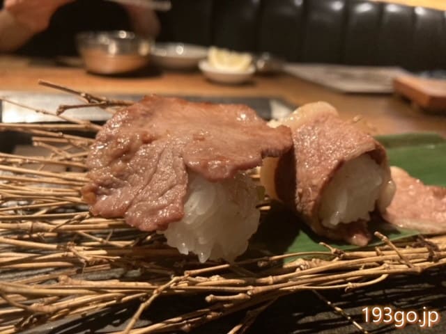 炙り肉寿司盛合せ(黒毛和牛2貫、とろタン2貫)1639円(税込)
