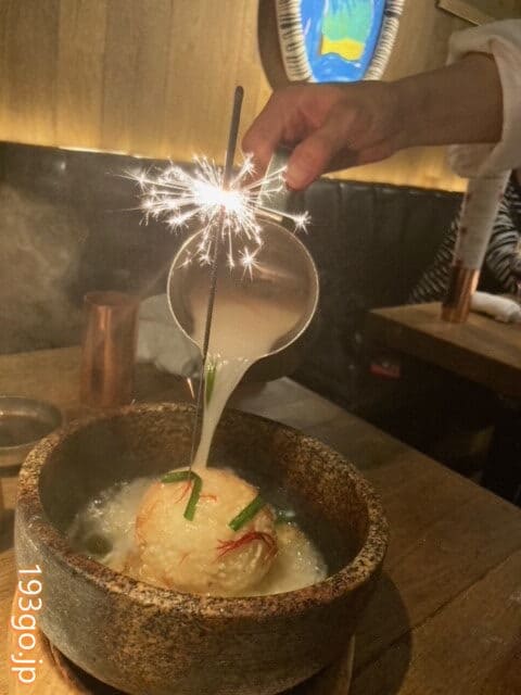 テーブルでスープを注ぐとジュワ~っ!グツグツ