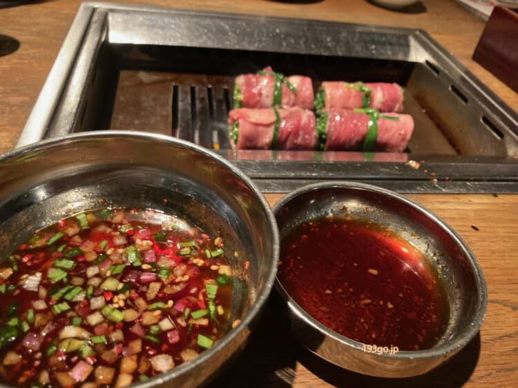 薬味の方には塩系の焼肉を、タレが付いたお肉はつけだれで頂くと良いそう。