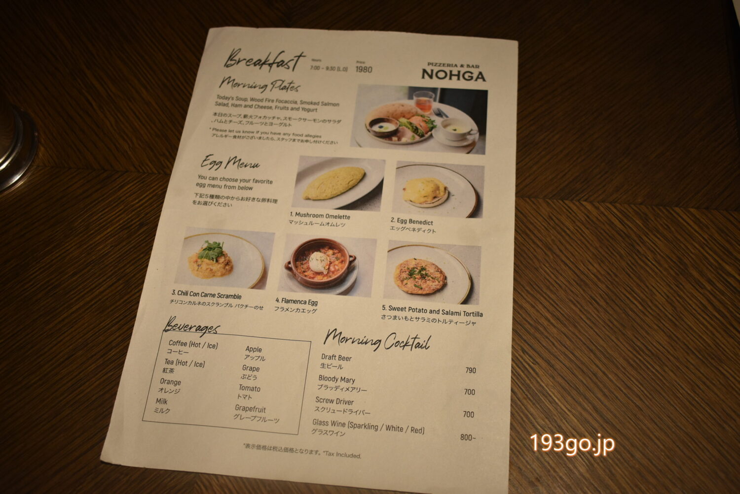 朝食は1Fのスパニッシュイタリアン「PIZZERIA & BAR NOHGA (ピッツェリアアンドバーノーガ)」 で。