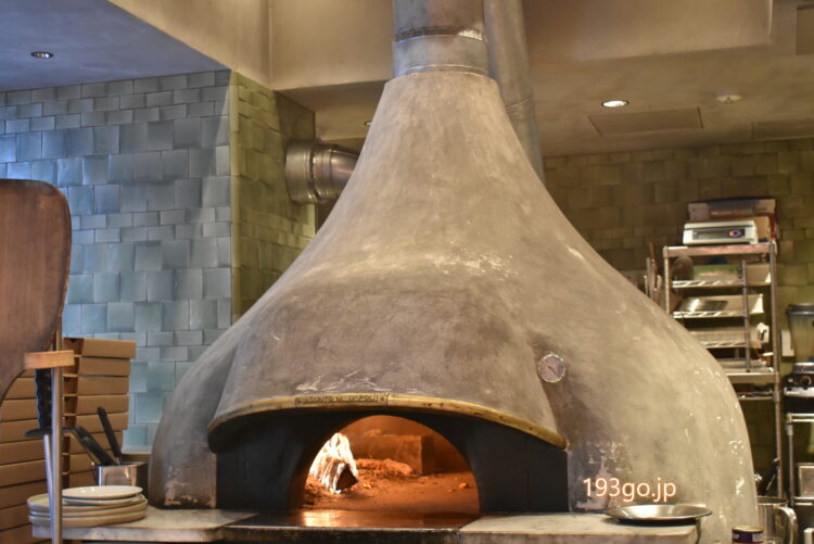 音がいい広々した店内にナポリから取り寄せたという本格薪窯!