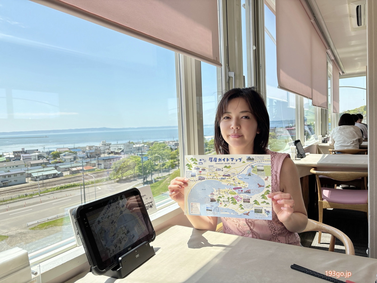 「道の駅 厚岸グルメパーク」に戻り、2階「レストラン エスカル」の前で、記名して待つ。
