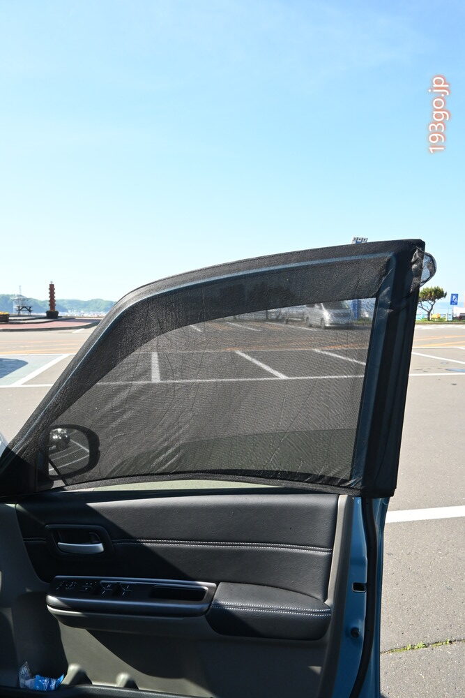 そんなときに役立つ、前席用のウィンドーネット(蚊帳のような網)。窓を全開にして網をかければ、解決!