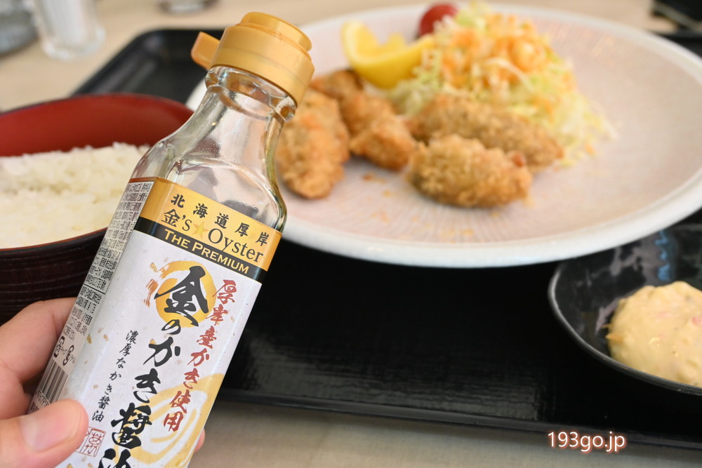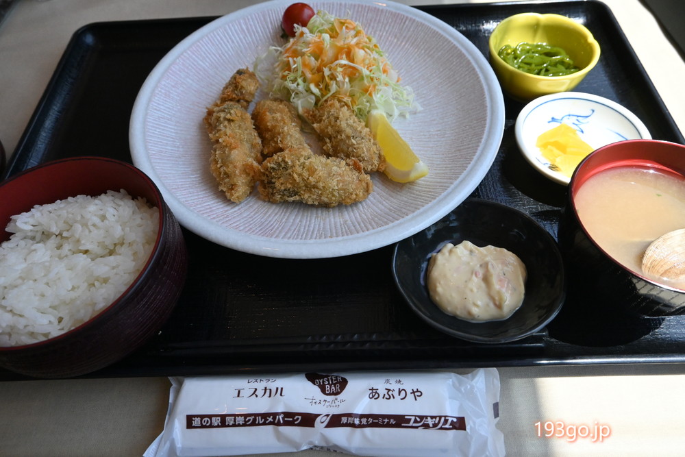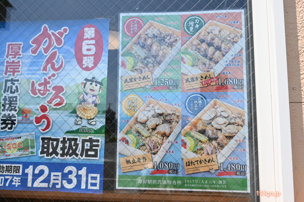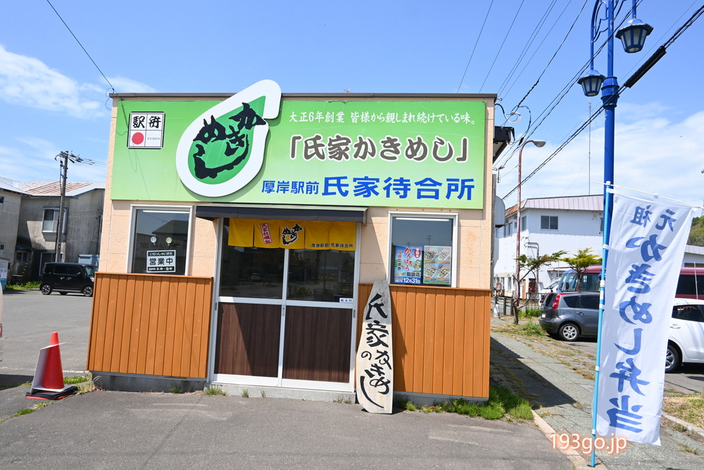 11時のレストラン オープンまで待てず、まずは車で5分ほどにある厚岸駅前の「氏家かきめし」で「かきめし」をゲット。