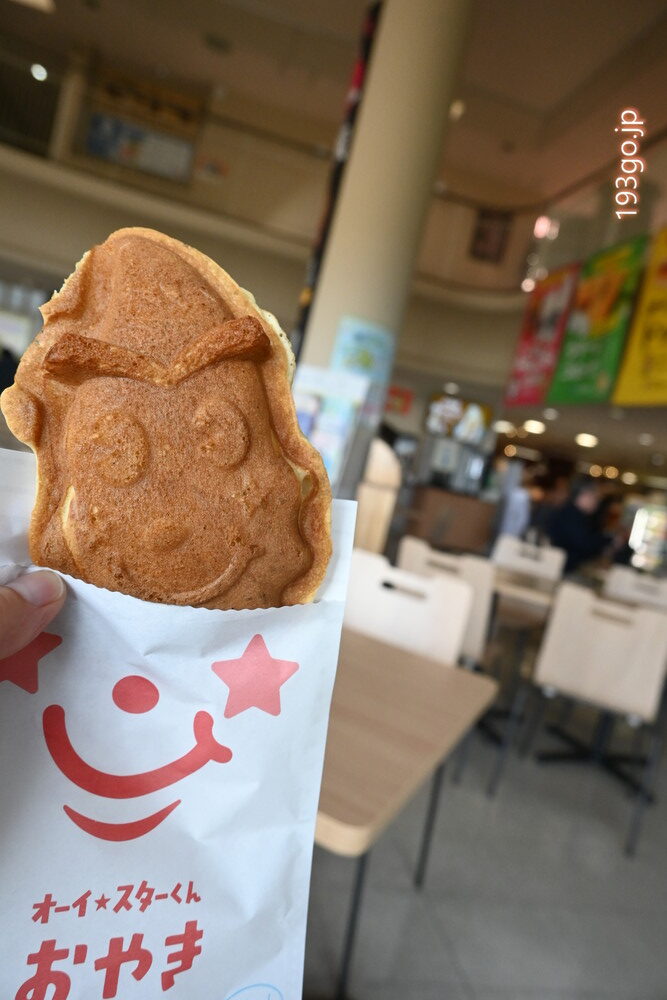 オイスターカフェでオーイスターくんおやき(クリーム):150円と、オイスタードッグ:1250円注文するものの、これではお腹いっぱいにならず。意外とボリュームが少ない…。