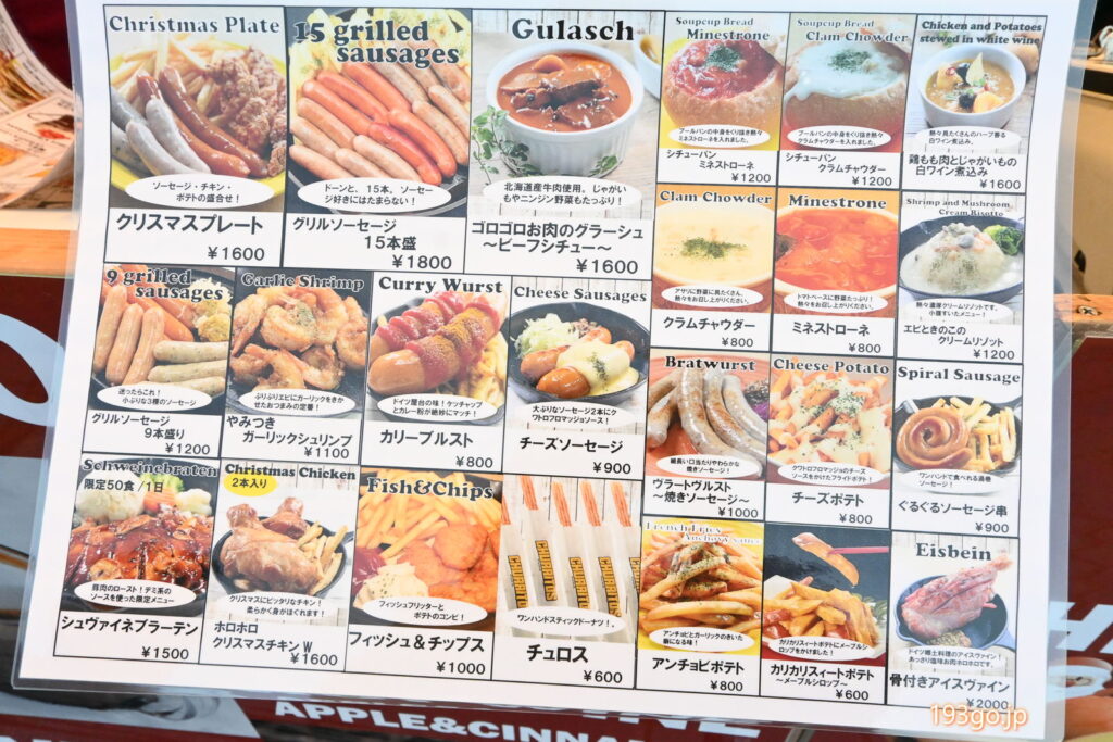 各ブースを見て周ると、クリスマスマーケットならではのグルメが勢ぞろい。