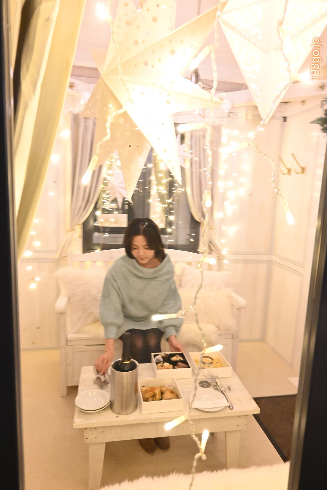 「星」をイメージしたデコレーションやイルミネーションが施され、日が暮れた後は部屋にプラネタリウムを投影できるなど、星降る夜のクリスマスを体感。