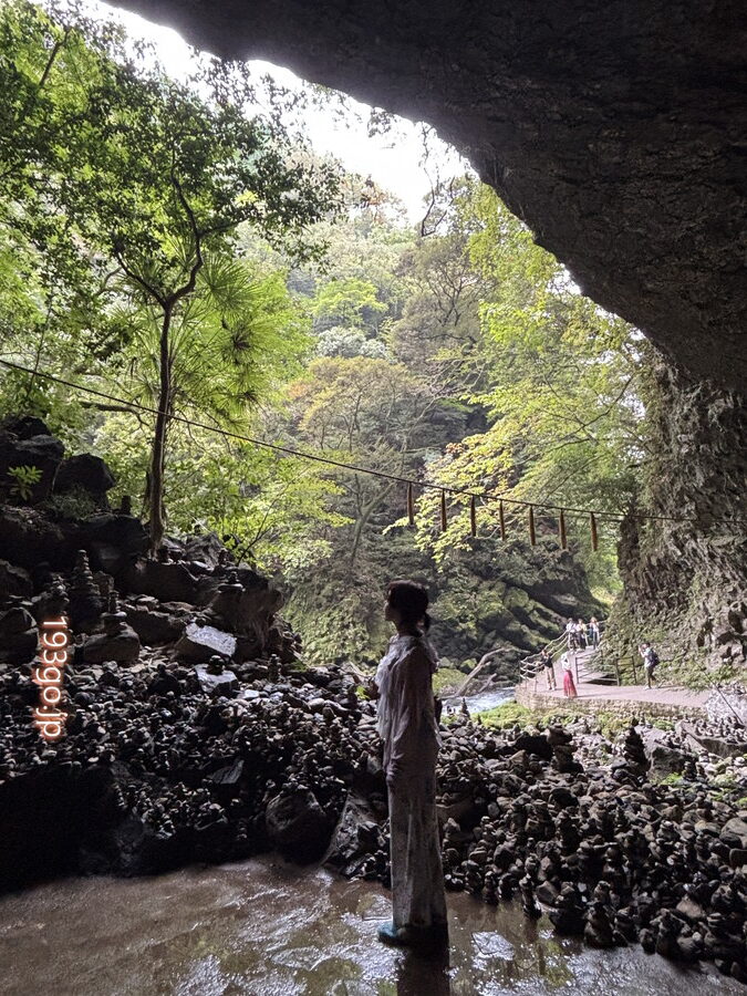 鉄道を楽しんだあとは車で移動し、「天安河原(あまのやすかわら)」へ。