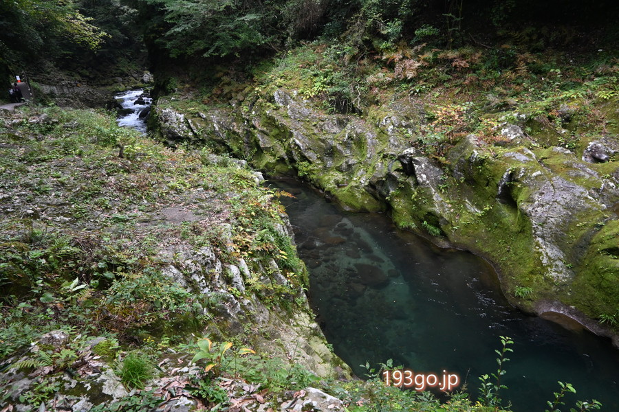 川沿いの遊歩道は水の流れが美しく、澄んだ川面が続く不思議な光景が印象的。