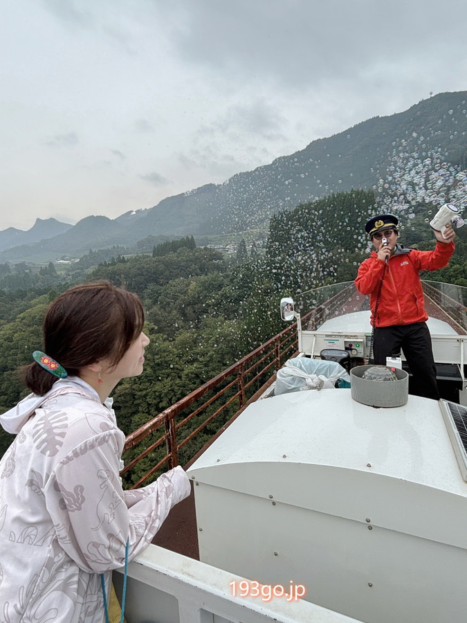 この日は小雨で空が霞んでいたけど、車掌さんがシャボン玉を飛ばし、
