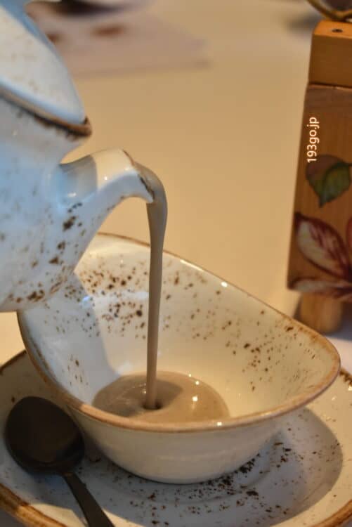 美味しい食事メニューと共にマッシュルームがふんだんに香るキノコのスープも嬉しい。