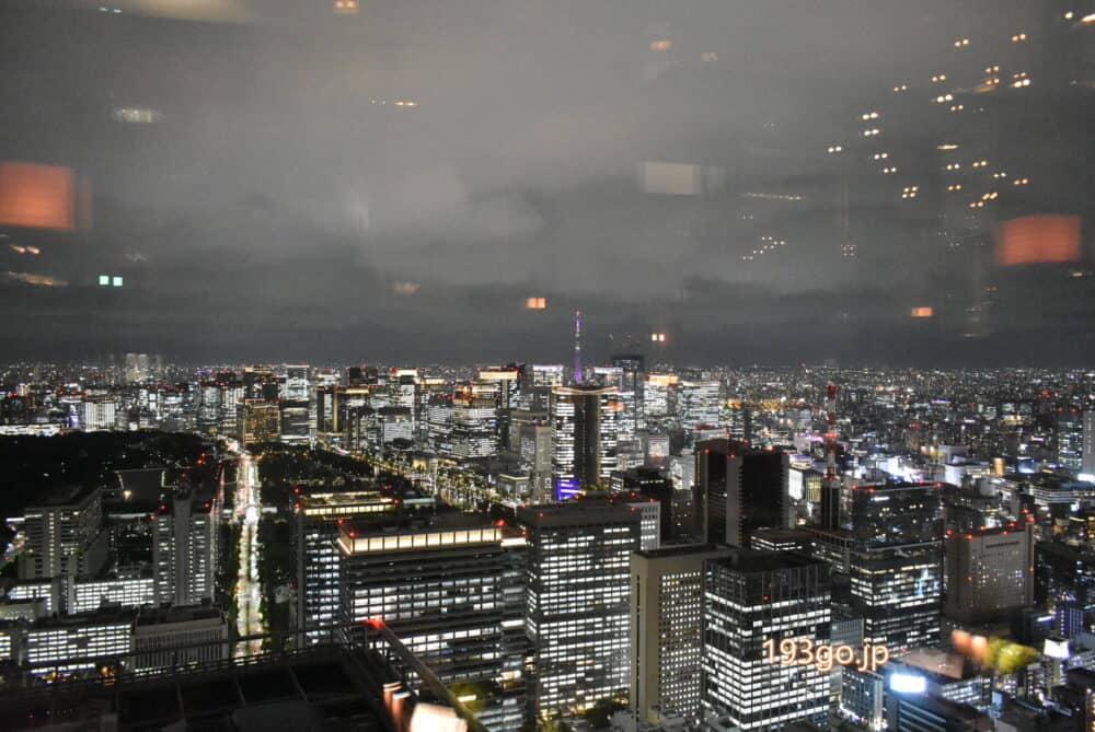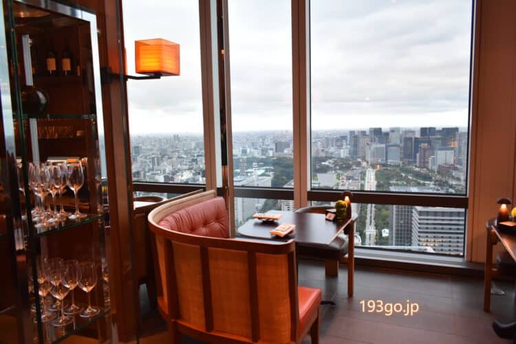 ちょうど夕方、薄暗くムーディーな店内に。夜景に変わる頃。