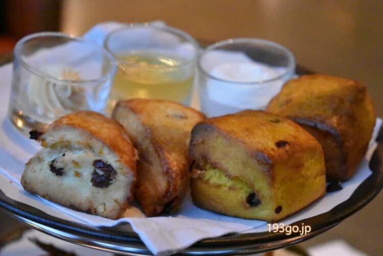 上段のスコーンは、かぼちゃと、オレンジ&レーズンの2種類。