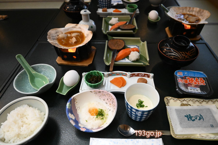 朝食も、青森名物の「貝焼き味噌」や紅鮭、月見とろろ、