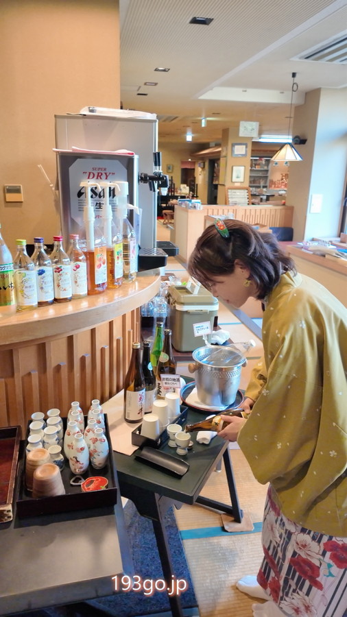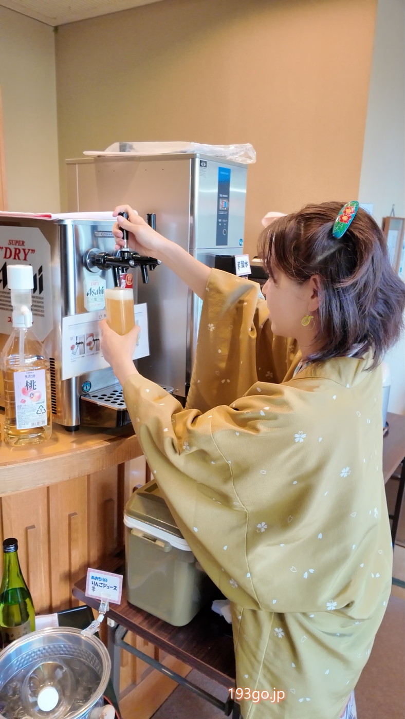 ラウンジでフリードリンク 地酒や生ビールにりんごジュースまで