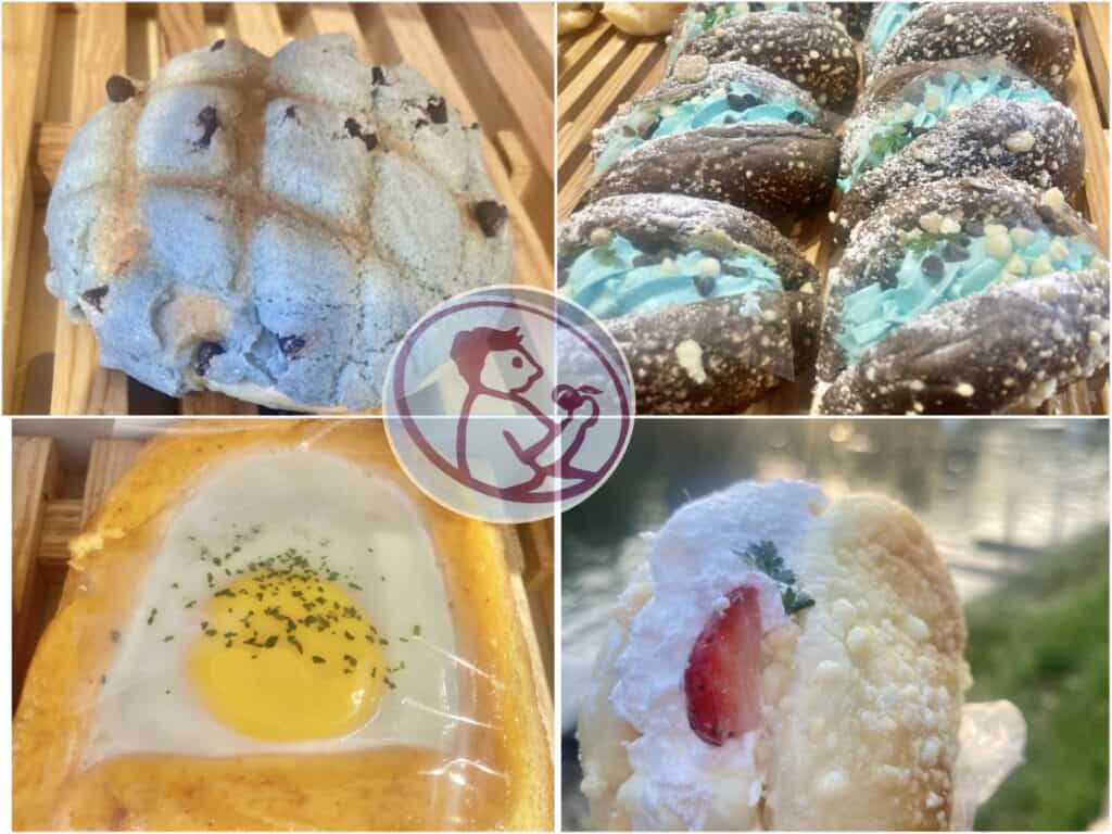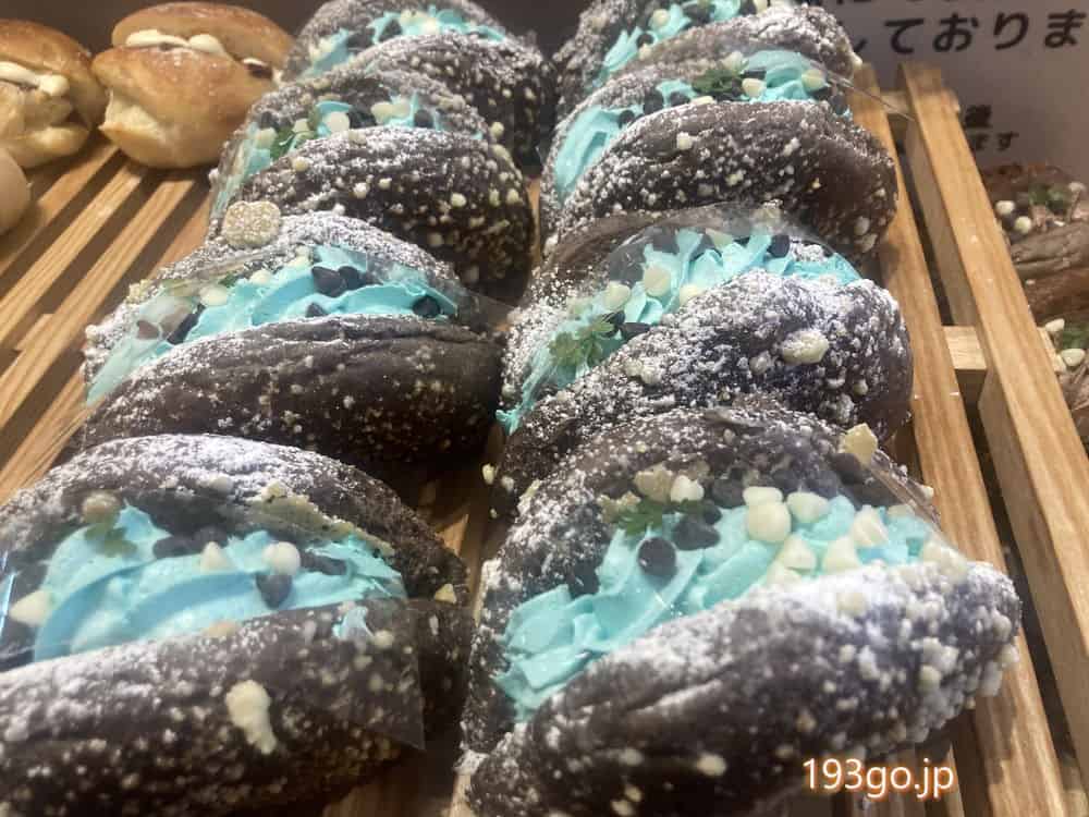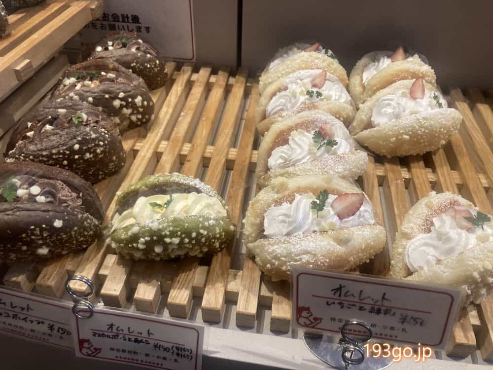 可愛らしい店構えなので入ってみると、ミント色クリームのオムレットやメロンパンなど、映えるパンがならぶ。