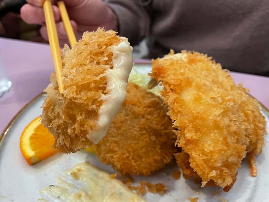 コロッケ、ホタテ、キス、唐揚げのセット。