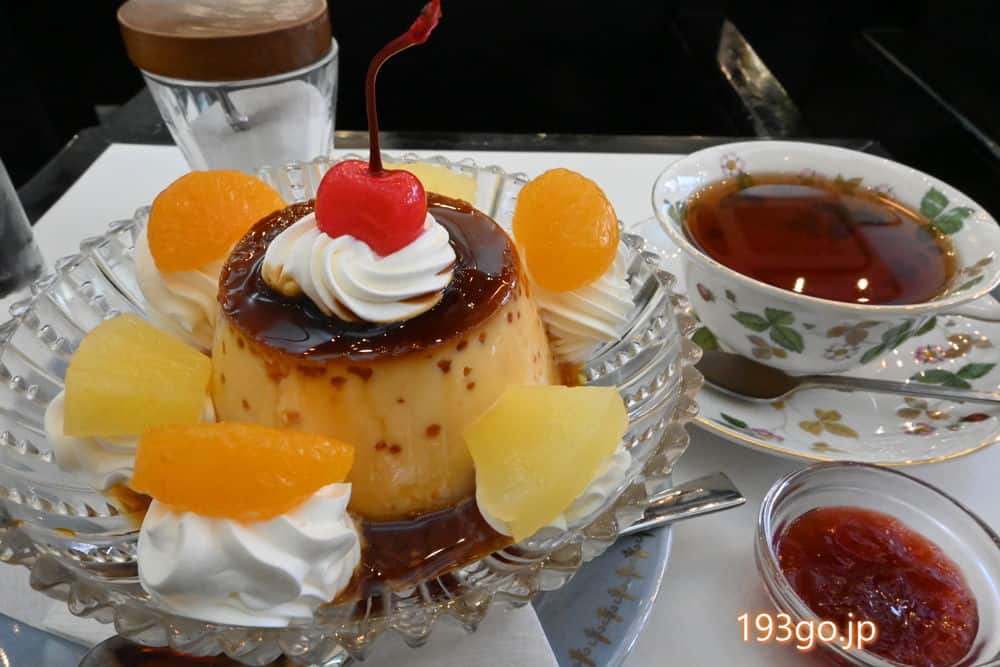 プリンのトップにはさくらんぼと、レトロ可愛い。