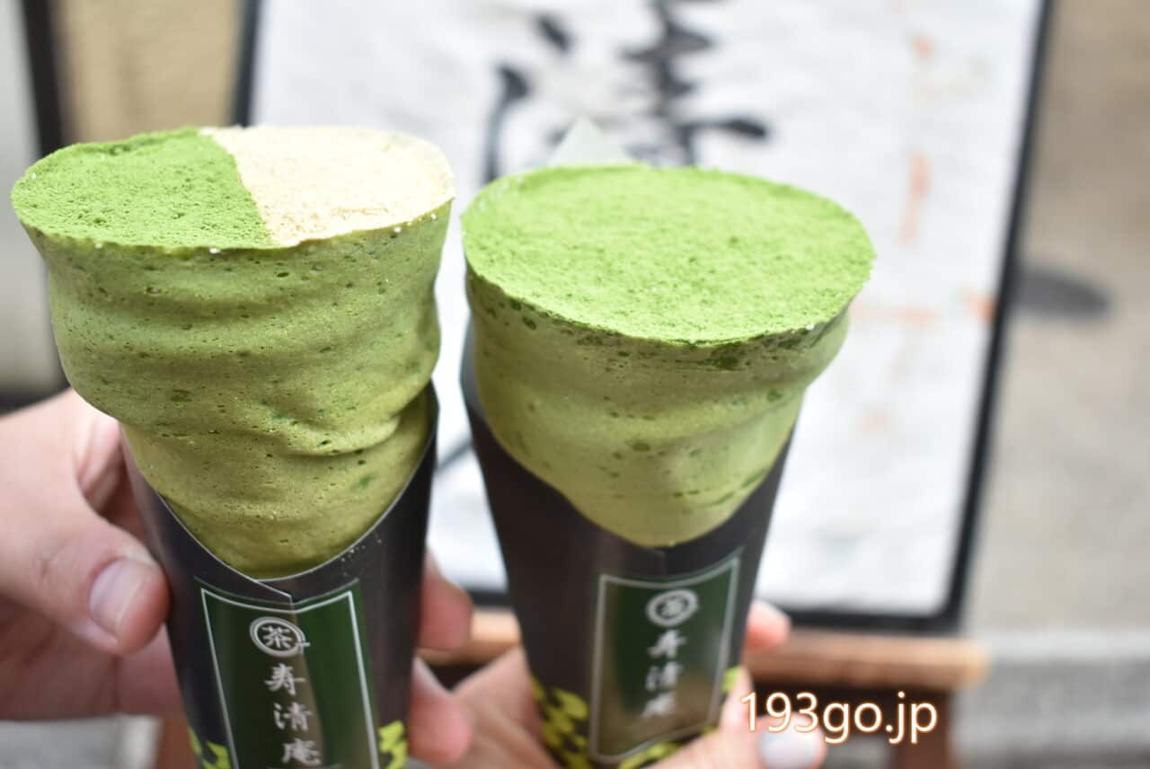 クレープの生地には何れも桑原善助商店の上質抹茶が使用されてるそう。