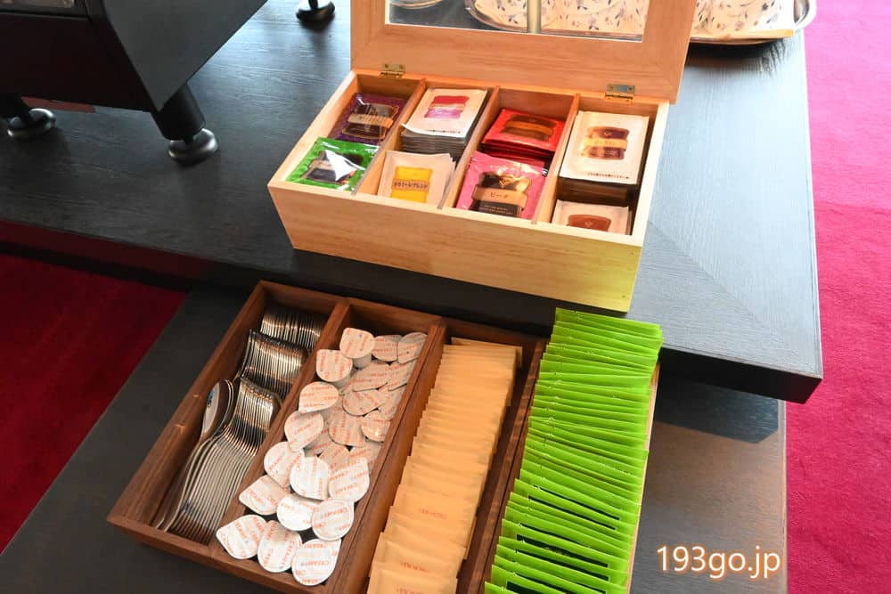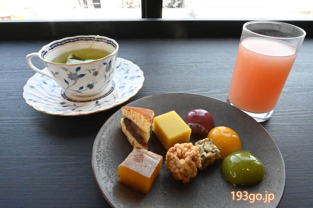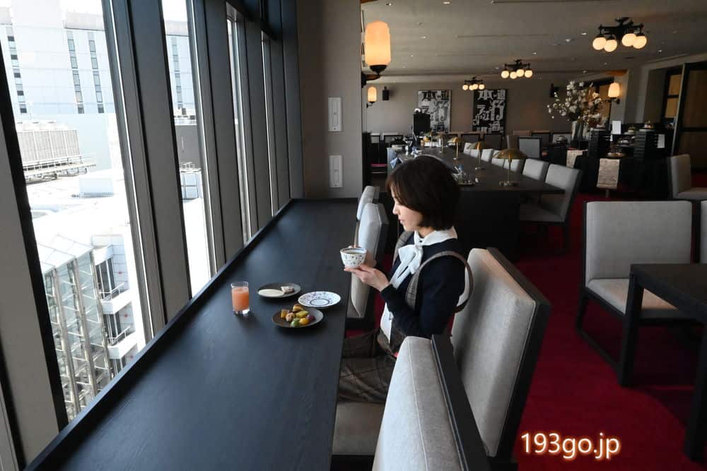景色を満喫できる窓辺の席で。ラウンジでのこの時間は、ホテルステイの醍醐味だね。