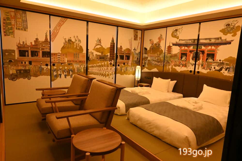 歌舞伎、江戸、浅草をモチーフにした客室。