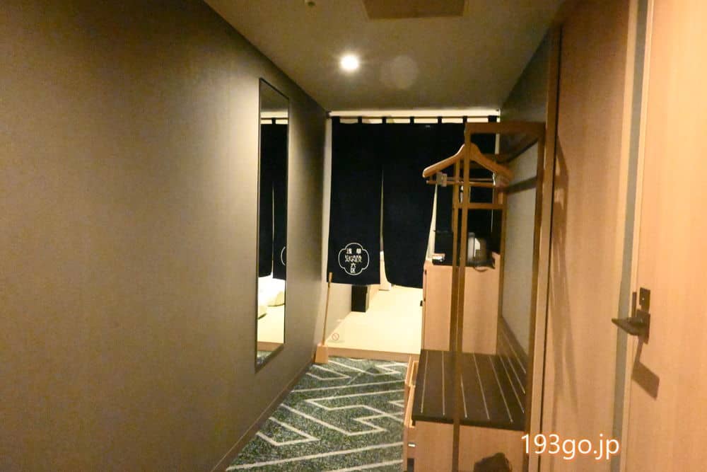 客室の扉を開けると、入口(廊下)がシームレスでワイド!クローゼットが省かれ、広々使える。