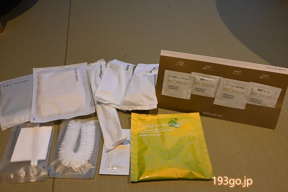 お茶やスキンケアセット、ヘアブラシ、ボディタオル、スリッパ…必要なものはここからピックアップ。