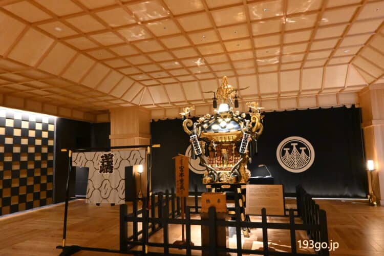 実際に三社祭で担がれる神輿も展示。煌びやかで迫力あり。