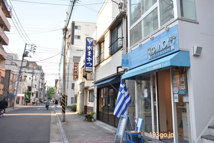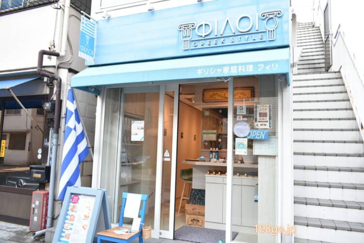 駅から3分ほどの閑静な通りにギリシャの旗を掲げたブルーの入り口が見える。今回伺ったのは「ギリシャ家庭料理 フィリ」