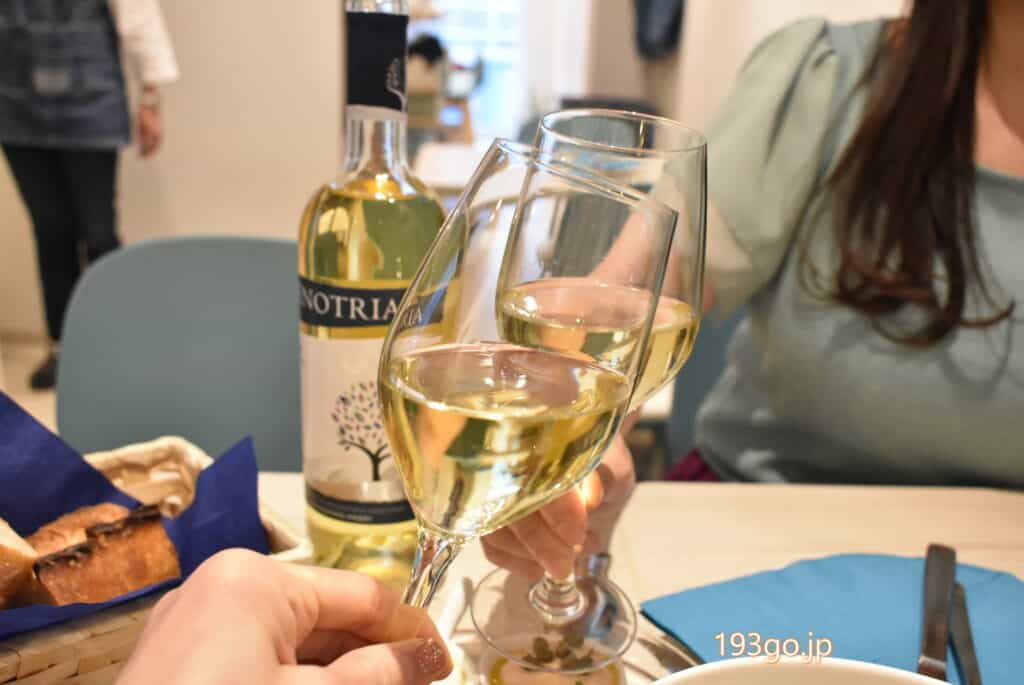 ワインもギリシャ産のものを取り揃えているので、早速、乾杯を!