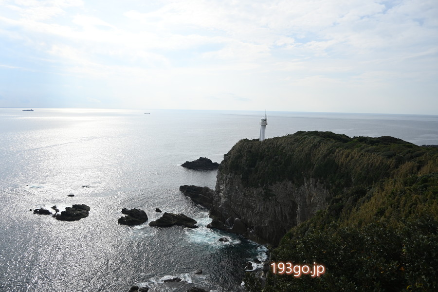 足摺岬の断崖にたつ、白亜の灯台は高さ18m。光度46万カンデラ。光達距離38km。