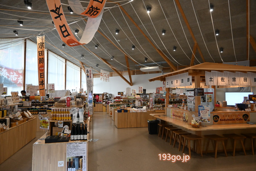 宗田節(そうだぶし)やカツオ、ゆず、芋けんぴなどの高知の特産品が並ぶ。