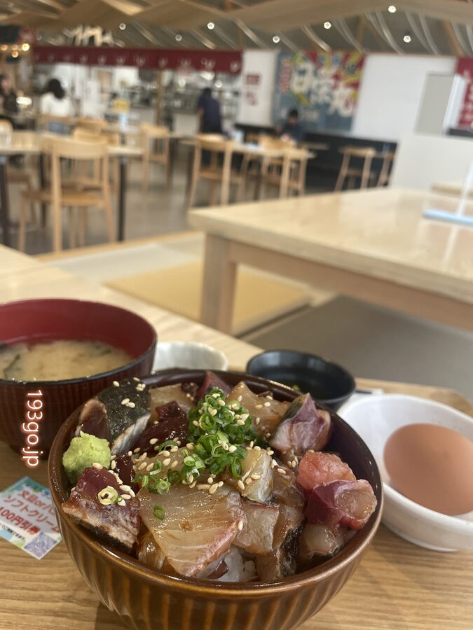 鯛やカツオなどのぶつ切りが乗った漬け丼・漁師飯。