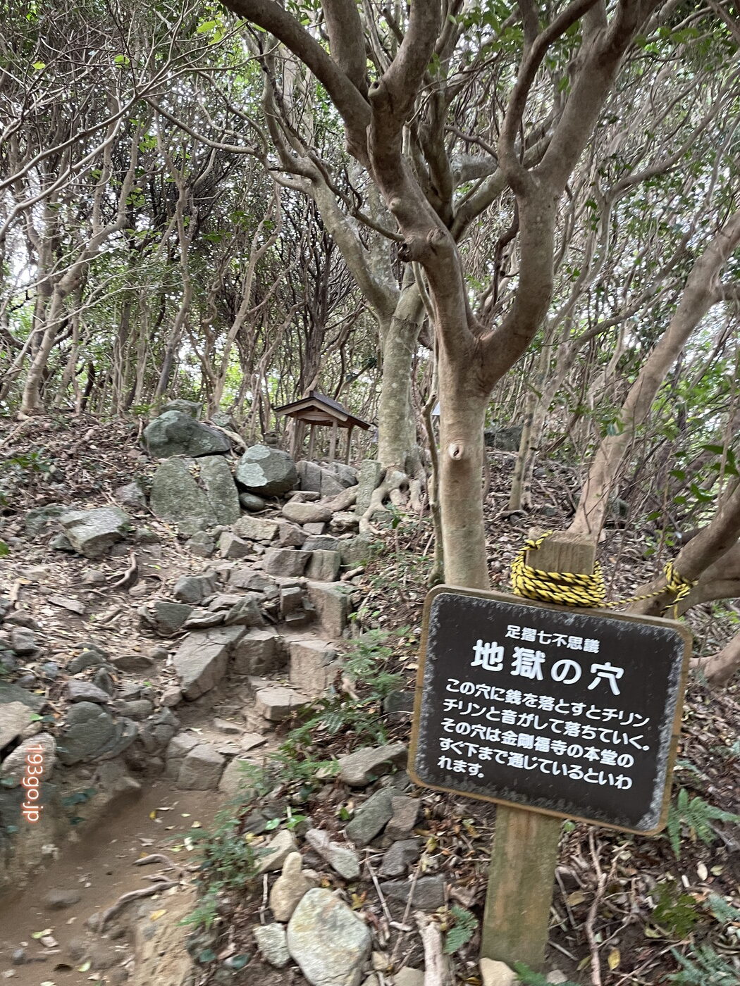 暖かい南の気候ならではの樹林帯を歩き、石段を上り下りして、
