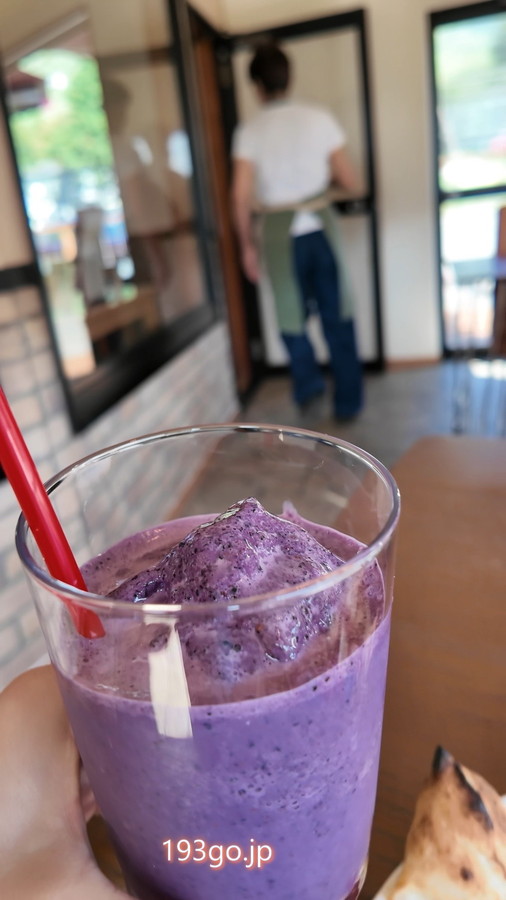 阿蘇のブルーベリーを使った鮮やかなシェイクでひんやり、のどを潤す。
