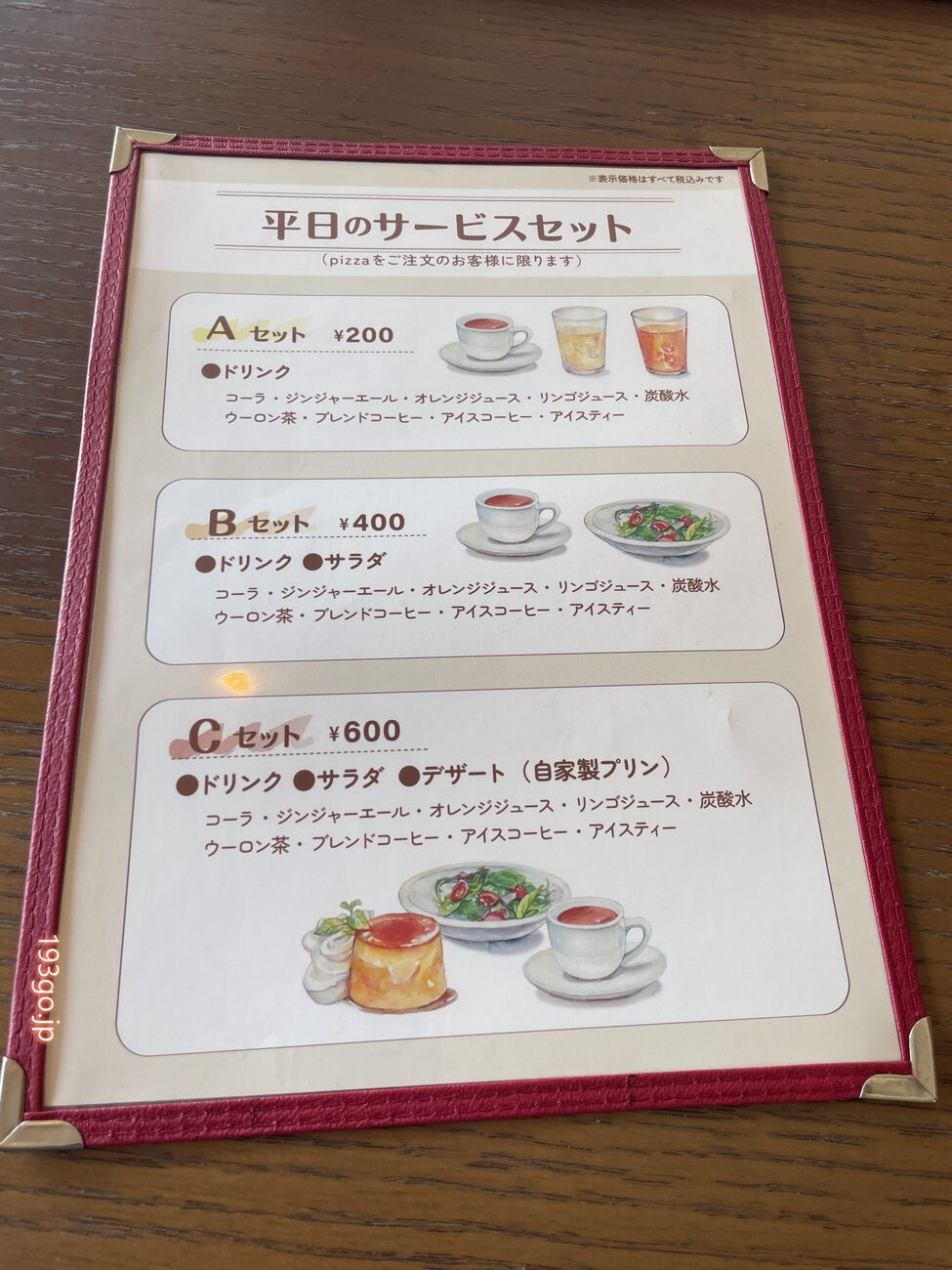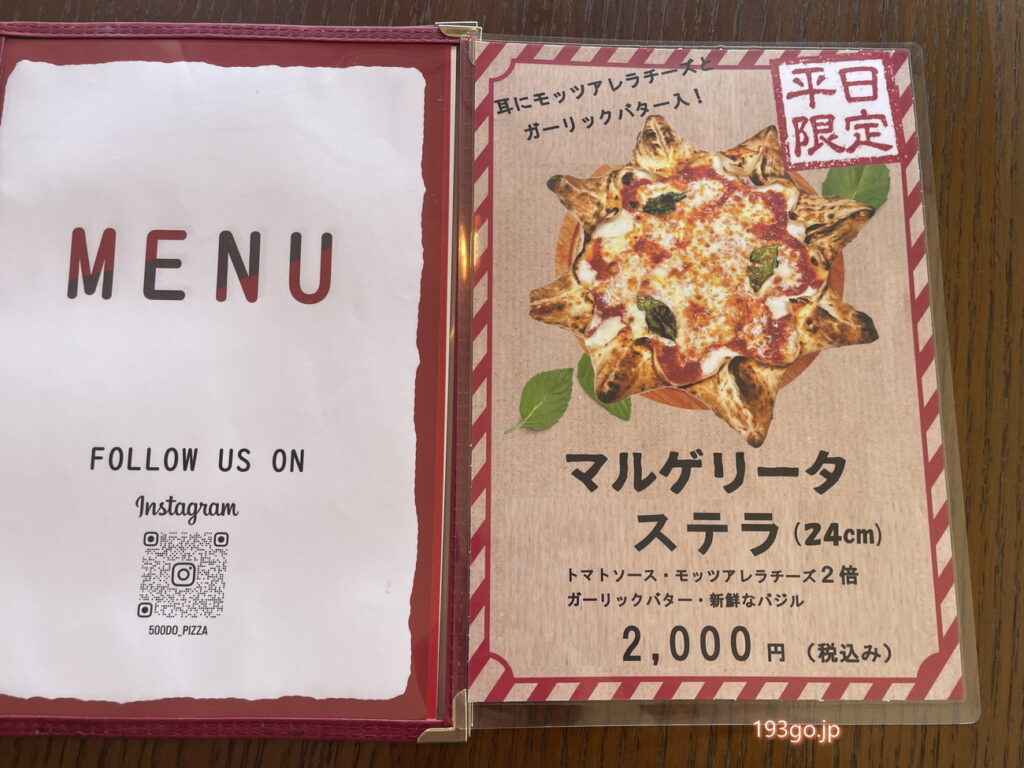 「500℃ pizza」メニュー
