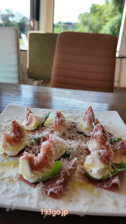 生ハムの塩気とフレッシュなチーズ&イチジクに、バジルが爽やかに香る。色味もとってもきれい。